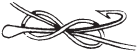 Самые удобные следующие два узла. Первый из них делается так: на конце волоска завязывают петлю и пропускают один конец в нее еще раз; если понемногу затягивать петлю, то она образует цифру восемь. Тогда ее надевают на стержень или спинку крючка и затягивают как можно крепче; лишний конец волоска срезается острым ножом наискось и обматывается смоленым шелком. Для того чтобы сделать другой узел, сгибают волосок на вершок от конца и накладывают на стержень сгибом к сгибу крючка; затем короткий конец обвивают раза 3–4 вокруг стержня и длинного конца, начиная от сгиба и приближаясь к лопаточке. Дойдя до последней, короткий конец продевают в образовавшуюся петлю, которая плотно затягивается; с остатком волоска поступают так же, как в первом способе.