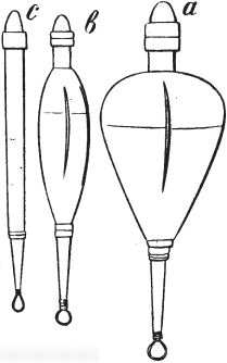 Поплавки из одной трубки гусиного или лебяжьего пера у нас довольно трудно купить, и потому лучше делать их дома. Для этого выбирают по возможности толстую и длинную трубку, очищают от сердцевины и кипятят минут десять в воде или снятом молоке, чтобы сделать ее менее хрупкой. Когда внутренние стенки трубки совершенно высохнут, в нее кладут небольшой шарик воска или сапожного вара и посредством тоненькой палочки с тупым концом приминают его в глухой конец трубки, который в это время полезно окунуть в кипяток, чтобы воск хорошенько пристал. Открытый конец трубки затыкается заостренной палочкой, обмазанной клеем; к заостренному концу привязывают петельку из медной проволоки, покрывают весь поплавок лаком и, когда он высохнет совершенно, пригоняют по нему перяное колечко.