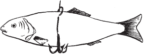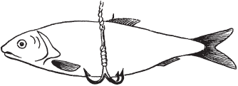 Рис. 49. Насаживание живца за спинку с якорьком, висящим сбоку