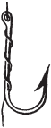 1) берут одиночный крючок (лучше всего прямой, т. е. с жалом, не повернутым в сторону) и к стержню его припаивают две петельки из медной проволоки – одну вверху, другую ближе к сгибу (рис. 50, нижняя петелька не обозначена). Если крючок имеет лопаточку, то ее предварительно следует отломить и несколько опилить стержень, иначе, когда петли будут припаяны, он будет слишком толст. Кому лень паять, тот может привязать петли, крепко обмотав их вместе с стержнем хорошим шелком, который затем должно пролакировать. Петельки должны быть настолько широки, чтобы через них свободно проходила петля баска, к которому привязан якорек: при соблюдении этой предосторожности всегда можно без труда снять или надеть крючок. В нижнюю петлю крючка вдевается поводок, протаскивается сквозь нее до тех пор, пока между якорьком и крючком будет требуемое расстояние, обертывается раза 2 или 3 вокруг стержня крючка и пропускается в верхнюю петлю. Остается потянуть за концы баска выше и ниже крючка, обороты затянутся, и крючок будет совершенно неподвижен. Для передвижения его достаточно ослабить несколько обороты баска, которые снова затягиваются, когда крючок будет поставлен на требуемое место. Крючок должен быть достаточно толст, чтобы не сломаться в случае, если при подсечке вместо якорька он вонзится в рот щуки;