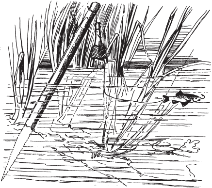 Ставят крючки с вечера вдоль береговых зарослей осоки и камыша на глубине 2–4 арш. и в некотором от них расстоянии (1 саж., напр.) следующим образом: на конец бечевы привязывается камень, кирпич, грузило – одним словом, что есть под рукой; измеряется глубина и навязывается палка-наплав. Чтоб бечева соскальзывала с поплавка, полезно сделать на конце его желобок для бечевы. Когда груз опущен и наплав плавает, рыболов едет, дальше опуская бечеву; свободный конец ее снабжен довольно большою глухою петлею как для соединения с медным поводком крючка (имеющим такую же петлю), так равно и для того, чтобы легче снимать попадающуюся добычу, не вынимая из нее крючка, что иной раз бывает довольно трудно и всегда мешкотно.