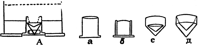 а, с – описанные предметы, б – разрез колпачка, д – наковальня