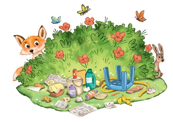 – Мне нужна твоя помощь в лесу, – объяснила Клара. – У куста шиповника появилась огромная гора мусора. Она такая большая, что я не смогу убрать её одна! В лесу этого мусора быть не должно!