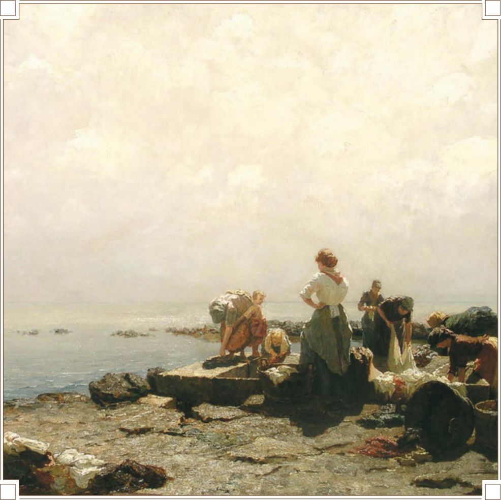 Wäschermädchen am Strand von Abbazia. Gemälde von Olga Wisinger-Florian.