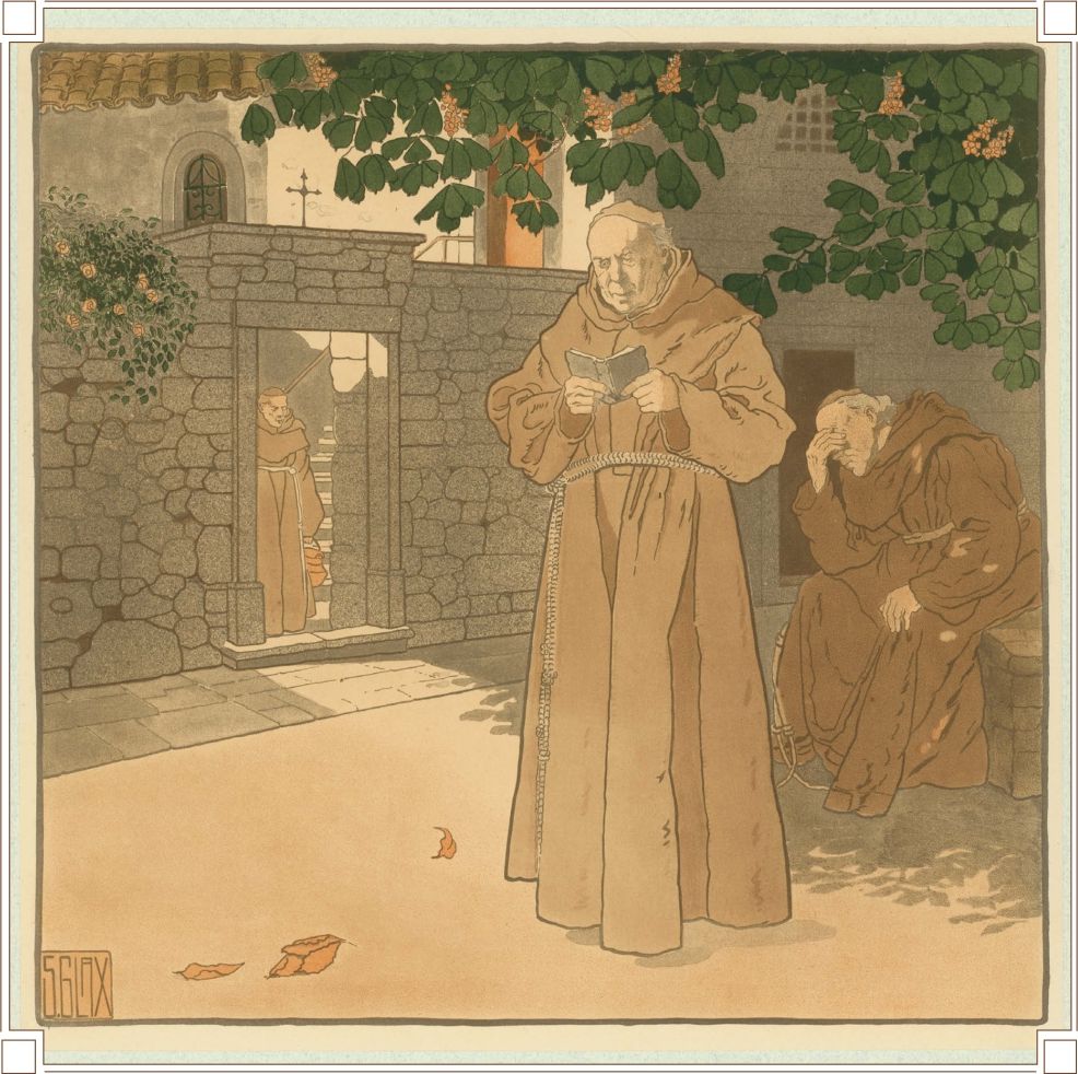 Die Mönche von St. Jakob. Algraphie von Stephanie Glax aus dem 1906 entstandenen Mappenwerk „Abbazia“.