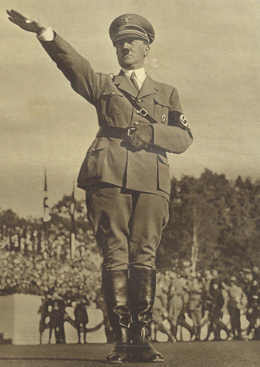 Stramme Idealhaltung, gewichste Stiefel: Hitler demonstriert den „deutschen Gruß“.