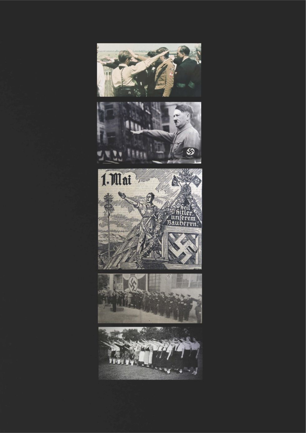 „Heil Hitler!“ ist nicht bloß ein Gruß. „Die Grußworte“, so schreibt der Völkische Beobachter schon 1935, „sollen uns immer wieder aus dem Kleinkram des Alltags herausheben und an die großen Ziele und Aufgaben erinnern, die Adolf Hitler uns allen gab“, sie sind die Zusicherung, dass man sich dem „Führer“ verpflichtet fühlt, wie Tilman Allert in seiner Analyse zeigt. Die Person Adolf Hitler werde durch die Grußformel sakralisiert, der „Führer“ mit „der Wirkungsmacht einer göttlichen Instanz ausgestattet gedacht, man glaubt an ihn, so wie man an Gott glaubt, und im Gruß wünscht man sich Heil durch ihn.“ Verstärkt werde diese Sakralisierung durch die Bewegung des Arms: Man gibt seinem Gegenüber nicht mehr die Hand, sondern reißt diese über ihn empor: „Er weist in die einsame Leere des Raumes auf den fiktiven Ort einer möglichen Begegnung, die im Irgendwo hoch über den Grüßenden liegt“. Zu diesem Aspekt der Unendlichkeit gesellt sich die militärische Zackigkeit: Der soldatisch anmutende „deutsche Gruß“ signalisiert „Aktionsbereitschaft“. Auch wenn sie keine Uniform tragen – die „Volksgenossen“, die zusammenstehen und die Arme hochreißen, agieren wie militärische Körper, demonstrieren bedingungslose Treue. Der „deutsche Gruß“ ist zugleich ihr exklusives Privileg – Juden ist die Ausführung des Hitlergrußes verboten, sein „magisches Potential“, wie Tilman Allert es nennt, bleibt den Mitgliedern der Volksgemeinschaft vorbehalten. In einer Art von „verkleidetem Schwur“, der beständig erneuert wird, verpflichten sie sich immer wieder aufs Neue dem „Führer“.