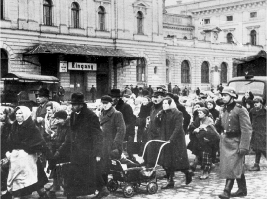 Deportation in den Tod: „selektionierte“ Opfer auf dem Marsch zu den Zügen am Krakauer Hauptbahnhof