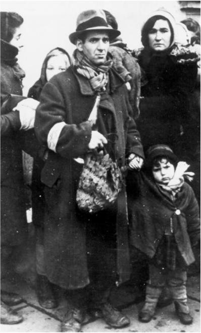 Eine jüdische Familie aus dem Krakauer Ghetto wartet auf die Deportation in ein Vernichtungslager.
