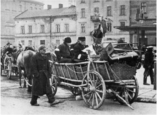 Übersiedlung ins Ghetto: Möbel und Hausrat werden auf Leiterwagen verladen.