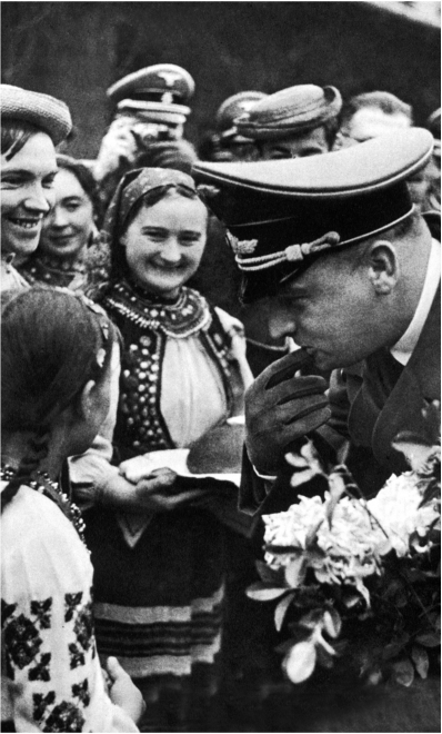 Ein Motiv für den Propagandafeldzug: „König Hans“ Frank begegnet Mädchen in ukrainischer Tracht.
