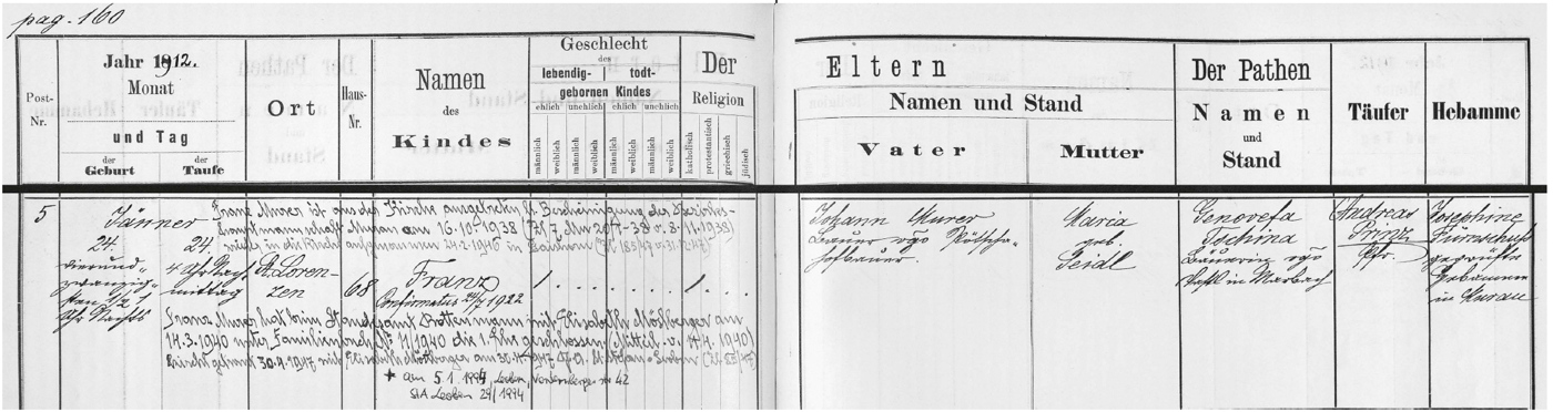 Noch am Tag der Geburt wird Franz von Pfarrer Andreas Prinz getauft. Eintrag im Taufbuch der Pfarre St. Georgen ob Murau, Band 10, S. 160, Diözesanarchiv Graz-Seckau.
