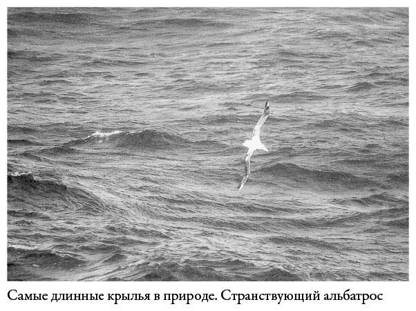 Альбатрос – величественная симфония плоти, органов чувств, костей и перьев, созданная из дальних перелетов и положенная на мотив переменчивых ритмов света, ветра и воды. Поразительная музыкальность полета альбатроса объясняется не столько его внешним видом, сколько контрапунктной сюитой действия и бездействия, из которых состоит его движение вперед. Птица рассекает воздушный океан на высокой скорости, сохраняя при этом покой, – исполин, который проносится по ветру, ни разу не взмахнув крыльями. Как отдельные ноты складываются в мелодию при взаимодействии друг с другом, так и неподвижность птицы превращается в полет на фоне проносящегося мимо пейзажа. Она следует за кораблем, смотрит на вас, кружит над судном от носа до кормы, не отставая ни на секунду, минуя волну за волной, милю за милей. Наблюдая за ней, вы не устаете удивляться: «Как ей это удается?»