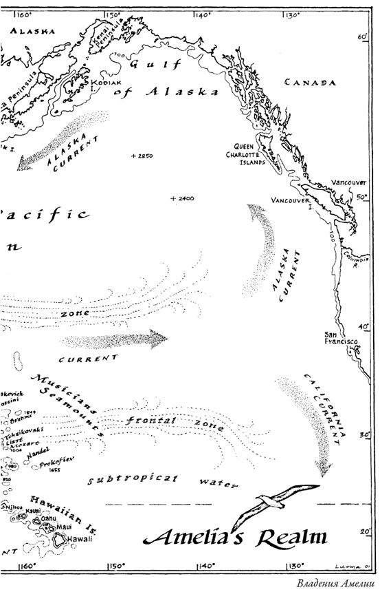 Это документальная книга, но с одной маленькой оговоркой. Все люди и места в ней вполне реальны, все события произошли во время моих путешествий, и я описал их максимально правдиво. Амелия – самая что ни на есть настоящая птица. Она действительно проделала весь этот путь, и мы узнали о нем благодаря закрепленному на ней передатчику, который регулярно сообщал нам о ее местоположении. Карты ее полетов точно соответствуют данным прибора. Однако то, с чем столкнулась эта птица и что испытала, всего лишь догадки, опирающиеся на точный маршрут ее путешествий, на мои собственные наблюдения за повадками альбатросов и на известные факты о них. Во время своих путешествий Амелия побывала именно в тех местах, что здесь описаны, а вот рассказ о том, что с ней там происходило, основан на общих сведениях об альбатросах.
