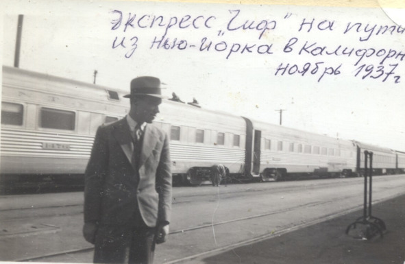 До свиданья, Чикаго! Несколько минут назад экспресс «Чиф» оставил Чикаго, а сейчас с громадной скоростью (110 км/ч) мчится на юго-запад в Калифорнию, в Лос-Анжелос, в страну вечного лета. Там, где теряются убегающие назад рельсы, чуть видны очертания его строений! Впереди 6000 км! 6.11.1937