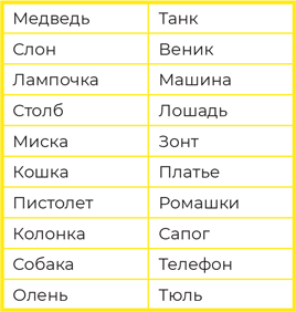 Тест 1. Не подглядывая в список, запишите все слова, которые вам удалось запомнить. И здесь очень важно записывать слова по порядку – так, как они были написаны выше.