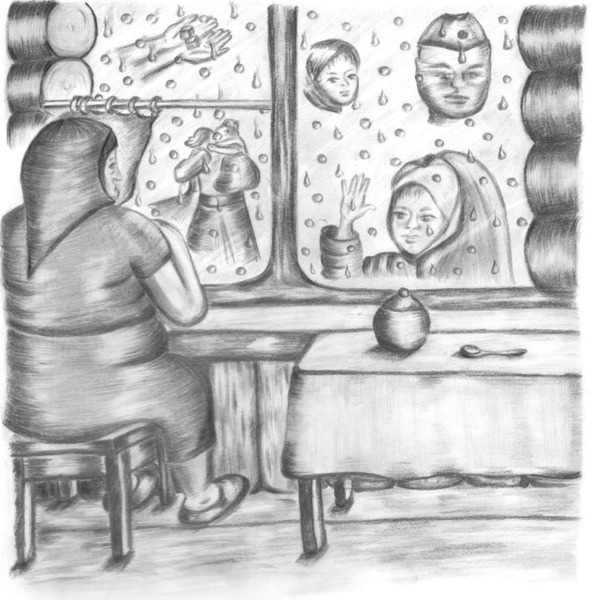 Когда за окном совсем стемнело, девочке очень захотелось пить. Она забыла засветло принести кружку из сенцев, где стояло ведро с водой. В темноте туда идти было очень страшно, а пить хотелось всё сильней. Катя собрала с запотевшего стекла несколько туманных капелек, облизала чуть влажный пальчик и вздохнула. Оконная влага только усилила жажду. Девочка осторожно повернула голову в сторону двери. Нужно всего-то встать, обойти старую, растрескавшуюся табуретку, открыть дверь в сенцы, а там направо – ведро с водой. Кружкой надо треснуть по тонкой пленке льда (вечером еще подмораживало), черпнуть воды и – назад. Ей уж семь, чего трусить-то?