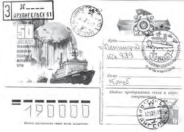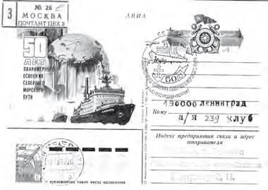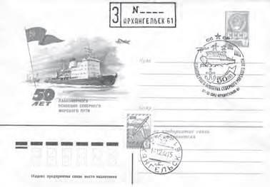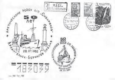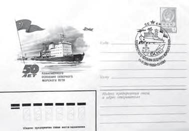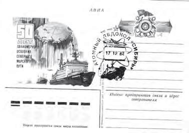 Почтовые карточки и конверты, посвященные 50-летию сквозного прохода ледокола «Александр Сибиряков» Северным морским путем. 17.12.1982 г.