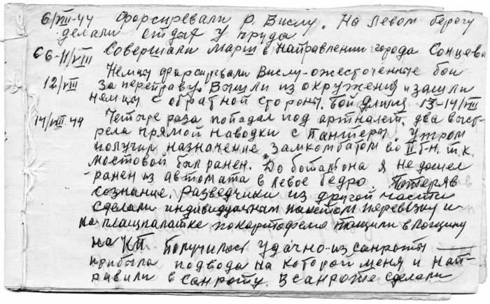 Страница дневника, который вёл на фронте М. А. Сахончик