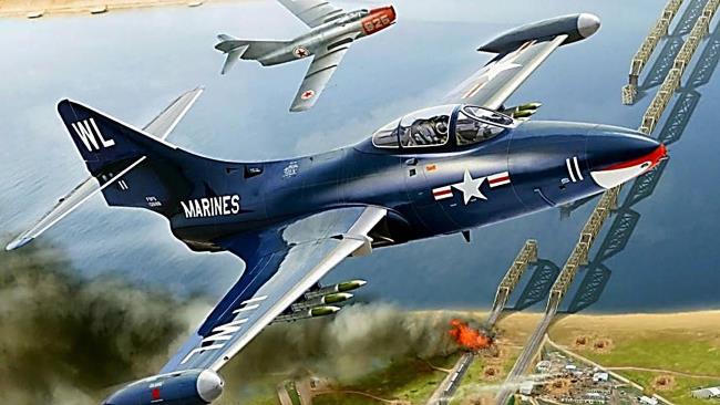 По его словам, их сбил реактивный истребитель – по всей видимости, F-80 или вероятней всего палубный F9F "Пантера", так как выход на цель наши летчики осуществляли со стороны моря, туда же и уходили.