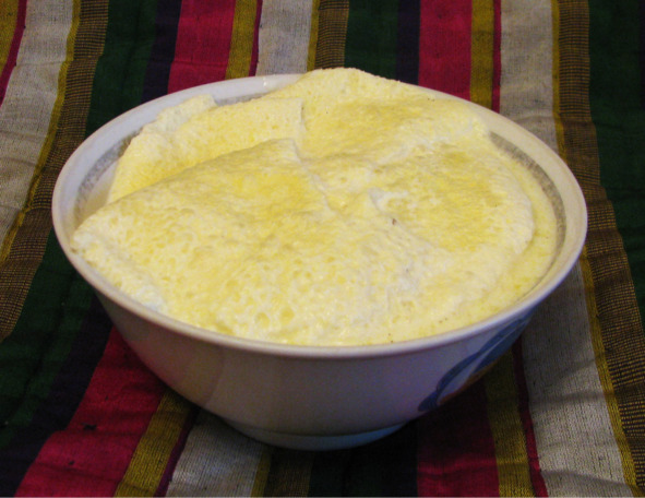 Открыв через 7 – 8 часов крышку, мы ахнули: вместо недавнего молока, нас встретили глыбы «айсбергов», навалившиеся друг на друга и застывшие, как холодец (так называемый «қаттық», которым заправляют супы, некоторые салаты, а также добавляют в тесто для лепёшек). Аккуратно слив это добро в мешочек и, связав горловину, мы подвесили его над раковиной, дав возможность жидкости свободно стекать в раковину.