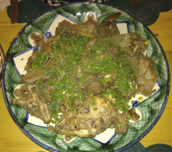 С наступлением темноты, зажигался тусклый фитилёк керосиновой лампы и семья, собравшись возле очага, начинала пиршество. Для начала, каждому члену семейства полагалась касушка горячего бульона. Кости и голова извлекались на отдельное широкое блюдо, которое ставилось перед хозяином дома. Глава семейства, не спеша, деловито вытряхивал из трубчатых костей «илик» («костный мозг») – лакомый деликатес – который равномерно распределялся между всеми. После чего, переходили к ножкам. Ножки были липкими и вкусными, с множеством хрящей и жилок, которые так приятно обсасывать! Так и представляешь себе довольную бедняцкую семью: урчащих детишек и радостных родителей, неустанно восхваляющих Аллаха за то, что прожит ещё один день.
