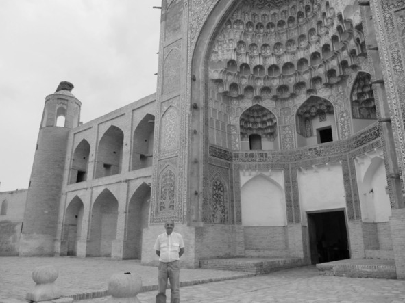 На фоне медресе Абдулазиз-хана, много лет спустя…