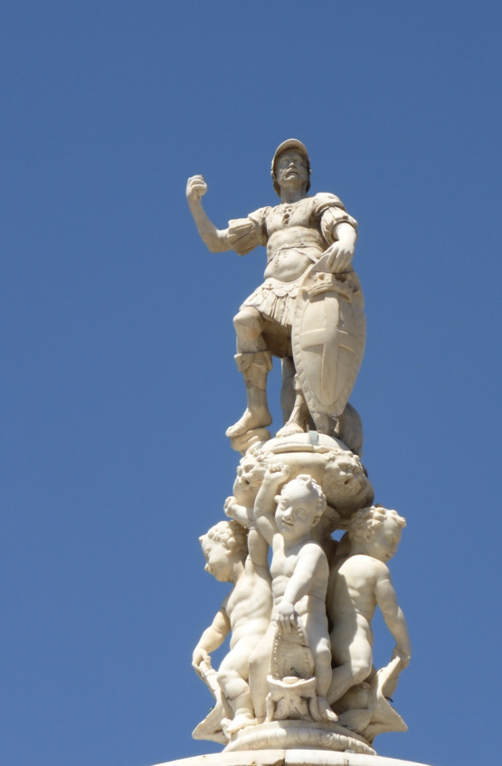 Джованни Монторсоли создал другой известный мессинский фонтан24 в районе порта. Фонтан изображает бога моря, побеждающего чудовищ Мессинского пролива – Сциллу и Харибду, чтобы обезопасить пролив для навигации. Сейчас можно увидеть лишь его копию, оригиналы скульптур находятся в местном музее (Museo Regionale) **. После реконструкции фигуру Посейдона (Нептуна) развернули лицом к морю.