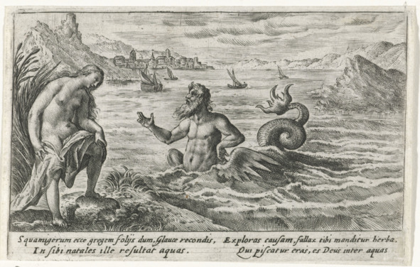 Красавицу Сциллу из нежной нимфы в безобразного монстра превратила вероломная волшебница Цирцея. Все случилось здесь же, на берегу Мессинского пролива. Жил тут когда-то светловолосый и голубоглазый рыбак Главк, прекрасный как бог. Однажды бросил он в траву на берегу свою добычу, а рыба внезапно ожила и проворно ускользнула обратно в море. Попробовал Главк волшебную траву на вкус, и как только сок ее попал ему в горло, борода и волосы посинели, руки и ноги превратились в хвосты с плавниками, и стал он морским богом. Вот в таком новом обличье увидел Главк прекрасную нимфу Сциллу, купавшуюся в море. Обратился он к ней с ласковыми словами, но она испугалась и уплыла.