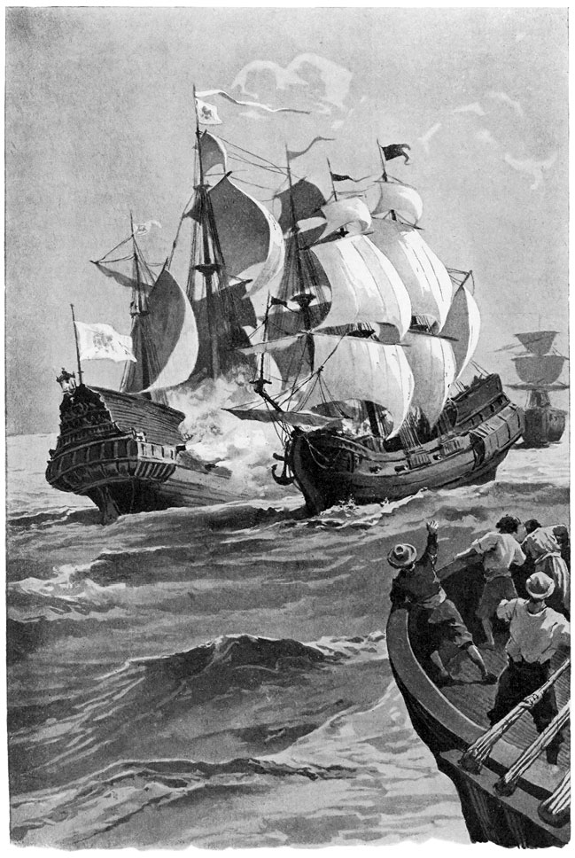 Эскадра, послушная приказу своего отважного предводителя, легла в дрейф. Матросы высыпали на палубу, чтобы принять участие в сражении в качестве простых зрителей, однако они были уверены, что испанский корабль долго не продержится, так как перевес был на стороне корсаров.