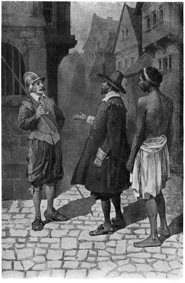 Так, разговаривая с самим собой, флибустьер дошел до конца улицы и уже готовился было повернуть за угол, как вдруг какой-то солдат с аркебузой, притаившийся в подворотне, преградил ему путь.
