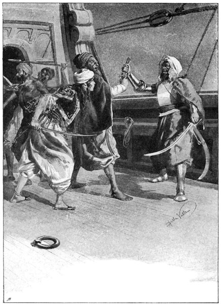 Первым на шканцы галиота прыгнул Метюб в сверкающей кирасе и тяжелом бронзовом шлеме с поднятым забралом, а за ним человек двенадцать турок, все, как и он, в железных доспехах, вооруженные длинными пистолетами с дымящимся запалом и кривыми саблями с широким клинком.
