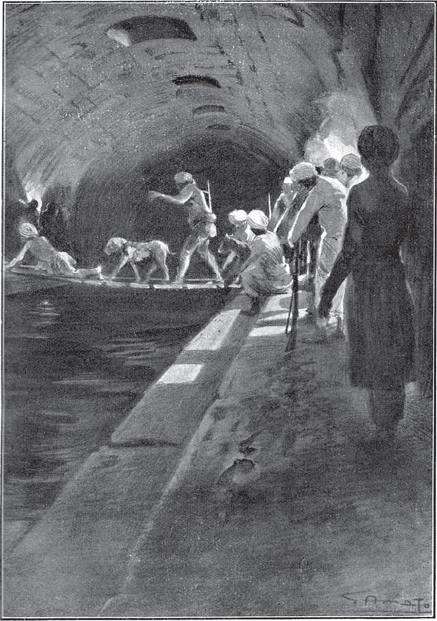 Тремаль-Наик, рискуя получить пулю (а всем уже было ясно, что таинственные обитатели клоак вооружены), приблизился к потоку, приподнял повыше лампу и воскликнул: