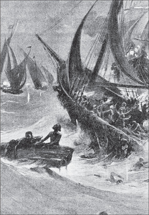 Ослепительный сполох осветил на миг грозные тучи, гонимые штормовым ветром, и широкий залив Маруду – один из самых просторных на северном побережье Борнео, за каналом Бангги. Ударил гром, подобный залпу пушечной батареи; его раскаты раздавались в воздухе еще несколько секунд.