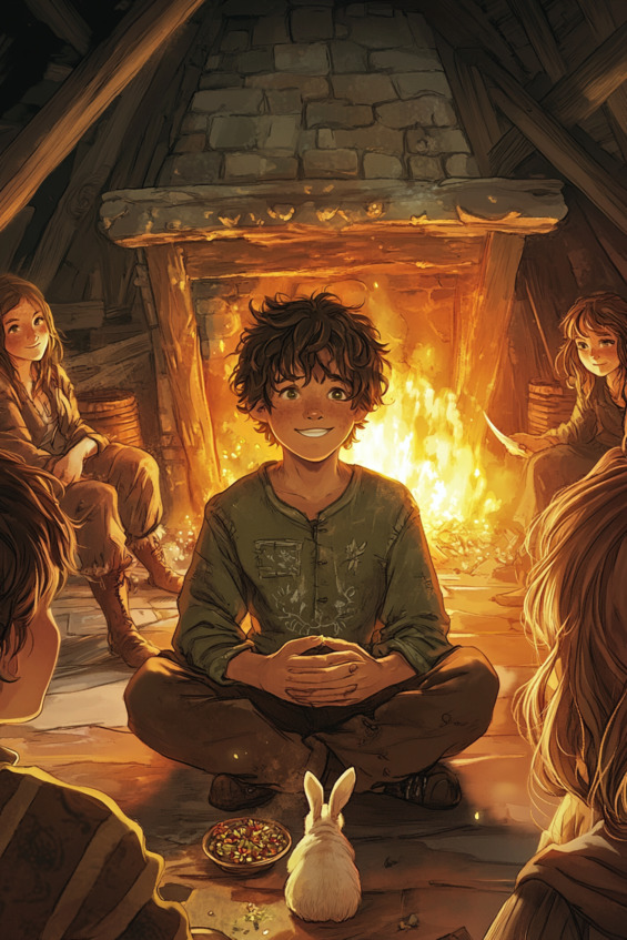 Теперь, сидя у огня, он чувствовал, как привычное тепло сестёр развеивает усталость. Их голоса, тихие, но наполненные жизнью, сливались с потрескиванием дров, а истории Эола казались ещё ярче, ещё живее, как будто и впрямь можно было увидеть этого отшельника, скрытого в тёмных чащобах.