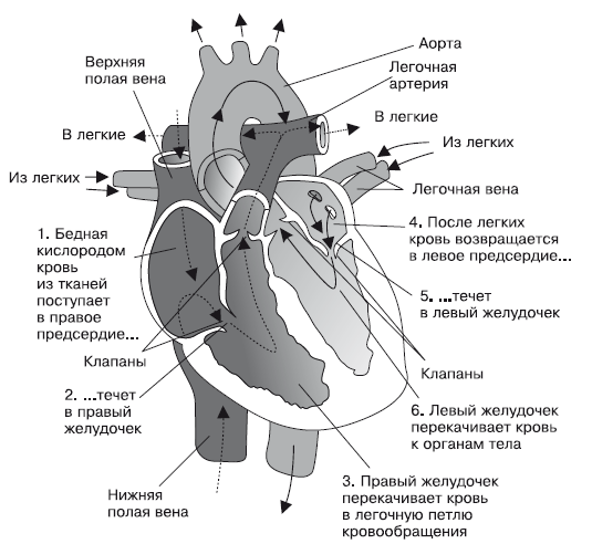 Сердце – это своеобразный насос, который прокачивает кровь из вливающихся в него венозных стволов и прогоняет ее в артерии.