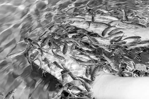 Популярность набирает и ихтиотерапия (рис. 2.2). Рыбы особого вида – garra rufа – отшелушивают мертвые чешуйки с кожи больного псориазом. Покусывая кожу, эти рыбки делают как бы микромассаж. В небольшие ранки попадает вода, богатая селеном, что защищает клетки от свободных радикалов, поры кожи очищаются от грязи, циркуляция крови ускоряется, биологически активные точки стимулируются, а сам человек расслабляется, напряжение уходит.