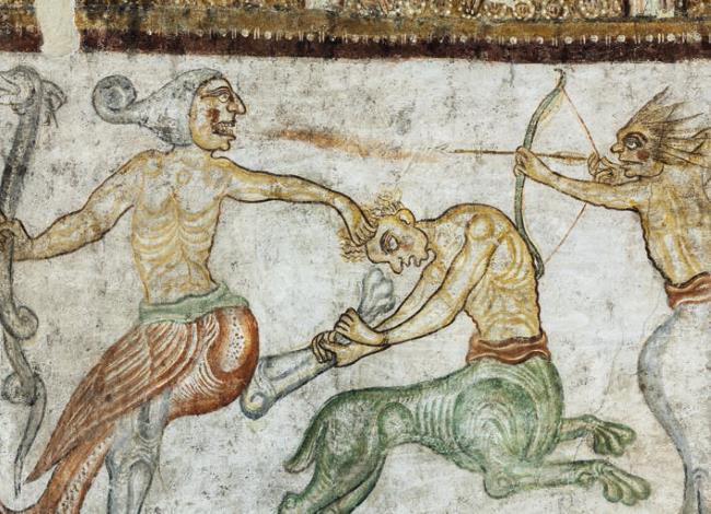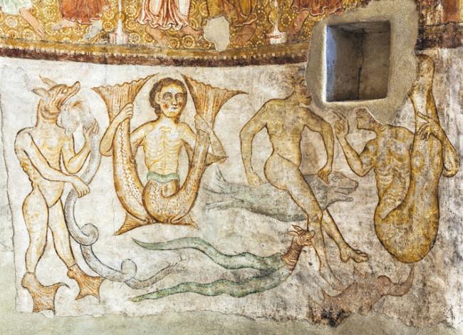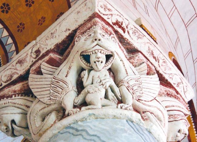 Похожие вопросы задают себе путешественники, рассматривающие фасады средневековых храмов, со стен которых на них смотрят фантастические животные, черти всех мастей и человекообразные существа пугающей наружности. Обычно подобные твари «живут» снаружи и населяют периферийные зоны, вроде водостоков, консолей и крыш. Но иногда их можно встретить и в интерьерах, и на весьма «почетных» местах, а в редких случаях – даже в алтаре. Яркий пример – нижний ярус апсиды церкви святого Иакова в Кастелазе (Южный Тироль, Италия), где изображены чудовища довольно фривольного вида: двухвостая сирена, кентавры, существо с песьей головой и перепончатыми лапами, а также другие химерические твари. Даже тот читатель, который никогда не интересовался средневековой архитектурой, наверняка вспомнит Собор Парижской Богоматери – символ французской готики с его знаменитыми гаргульями на фасадах.