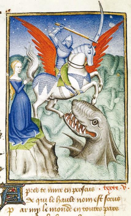 «Персей освобождает Андромеду». Миниатюра из книги Кристины Пизанской «Послание Офеи Гектору». Париж, начало XV в., Британская библиотека (Лондон, Harley 4431, fol. 98v).
