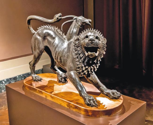 Первая группа монстров многочисленнее всех остальных. Гибридность служила маркером монструозной или сверхчеловеческой природы еще на Древнем Востоке. Во времена Античности эта традиция продолжилась, о чем свидетельствует, в частности, знаменитая химера из Ареццо, бронзовая скульптура высотой 78,5 см и длиной 129 см, созданная этрусскими мастерами в V веке до н. э. В древнегреческой мифологии химера была огнедышащим чудовищем, обитавшим в Малой Азии. Извергая из пасти огонь, она опустошала все вокруг. Одолеть ее смог молодой воин по имени Беллерофонт.