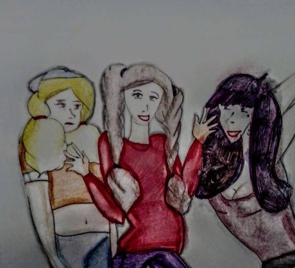 Я двинулась к своей комнате, громко хлопнула дверью, закрыла ее на замок и раскинулась как звездочка на свою роскошную бирюзовую кровать. Я обняла подушку и тихо заплакала. Я, как истинный самокритик, мысленно начала в себе копаться и ругать себя за что-то. В мою комнату зашла та самая Элина. Она глубоко и резко села на мою кровать и как начала задавать каверзные вопросы, порой даже переходя на личности! Меня ее любопытство окончательно истерзало и одолело, затем на последний ее вопрос я встала, развернулась, открыла дверь и пошла на кухню. Элина осталась в моей спальне. Я тихонько подошла к Ане и Вере. Те удивились, какого лешего у меня лицо красное? Я им ответила, высказала все напрямую и нечаянно прослезилась. Мои чувственные сестрицы меня конечно утешили.