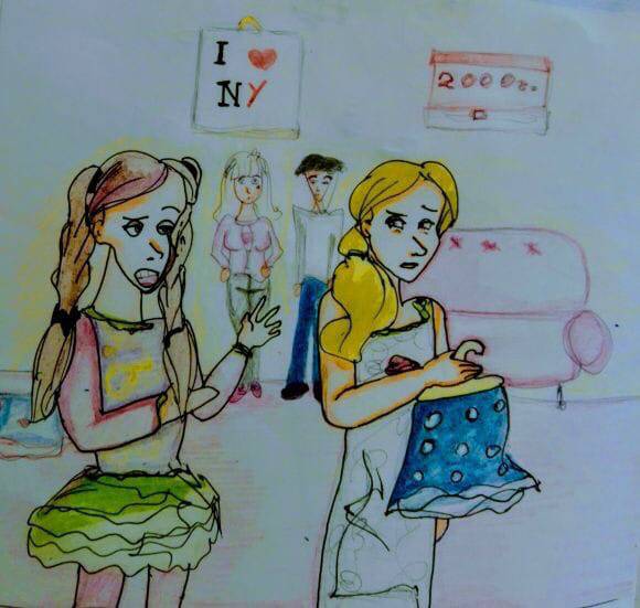–Доброе утро! Знаешь, Вера… Мы же сестры, мы должны друг другу уступать.. Давай носить это платье по очереди! Или забери его себе! Я как художник вижу и считаю, что тебе оно действительно больше идет!