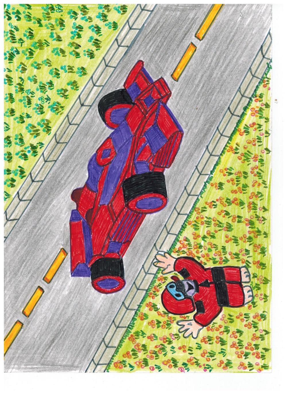 Кротик прибыл на автодром на поезде и купил в кассе билет в самом первом ряду. Его место и правда оказалось самым интересным, ведь он мог наблюдать не только за кольцевыми автогонками, но и за пит-стопом, который находился совсем рядом. Кротик не знал, что такое пит стоп, он лишь наблюдал за тем, как возле него ходили люди в шлемах и осматривали красивый красный автомобиль со всех сторон. Кротику было так интересно посмотреть поближе этот пит-стоп, что он перелез через перила, не удержал равновесие и бухнулся на травку. Осмотрев ушибленное место, он понял, что совсем цел и ничуть не пострадал. Кротик вспомнил, что упал из-за того, что очень хотел поближе посмотреть на этот пит-стоп. Теперь, когда Кротик оказался на газоне, он понял, что может чуточку поближе подойти к красной машине. Однако перед собой он увидел лишь заборчик из аккуратно сложенных автомобильных покрышек. Кротик пытался посмотреть через эти покрышки, но как ни старался ничего увидеть не смог.