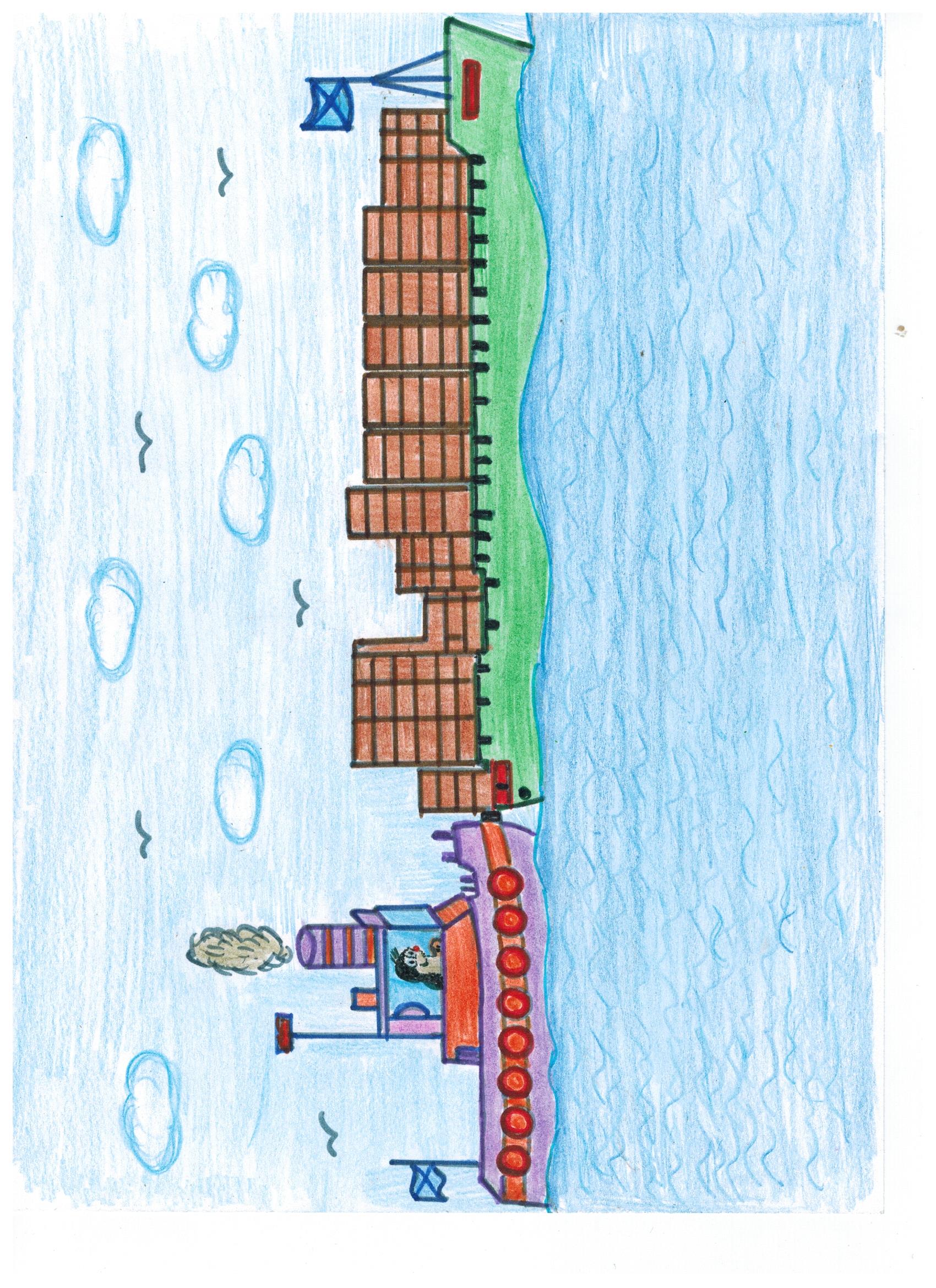 «Кротик, это не просто сокровище! Благодаря нему мы можем строить дома, дороги, больницы, полицейские участки, да любые здания строят при помощи этого сокровища! И наша с тобой задача доставить это сокровище в город, чтобы сделать пользу для людей! Я считаю, что делать добро – это самое важное в жизни! Ты со мной конечно же согласен?». Кротик так любил помогать людям и конечно же был согласен с капитаном. Тем временем проходил процесс сцепки буксира с баржей. Сцепная балка баржи попала в клешни цепного замка толкача. Кротик не ожидал, что им удастся не просто забрать все сокровища, но и захватить целый остров с собой. Капитан решил ещё немного рассказать Кротику интересного: «Кротик, я вижу ты удивлён, что мы забрали целый остров с золотом, но это ведь баржа – плоскодонное судно, которое используется для перевозки грузов по воде. Баржу мы толкаем сзади, а не тащим за собой. Всё дело в том, что сзади нашего буксира есть грибные винты, которые крутятся и образуют бурлящий след на воде, похожие на волны. Если баржа будет буксироваться сзади, она бы тормозила наше движение, и мы шли бы очень долго. Да и с нашей рубки эту баржу видно лучше. Отважные моряки подходили к конечному пункту где им предстояло выгрузить это песочное золото. Капитан понемногу заканчивал свою экскурсию: