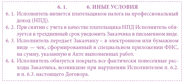 Примерная формулировка пунктов договора с самозанятым