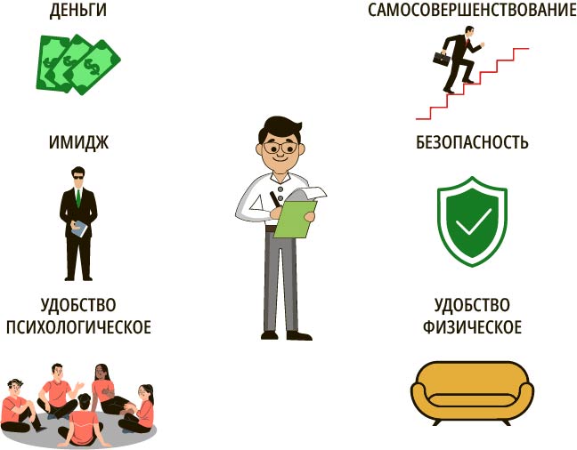 У каждого человека свой рейтинг базовых потребностей и своя система ценностей – какие-то потребности доминируют над другими, ценности одного человека не являются таковыми для другого.