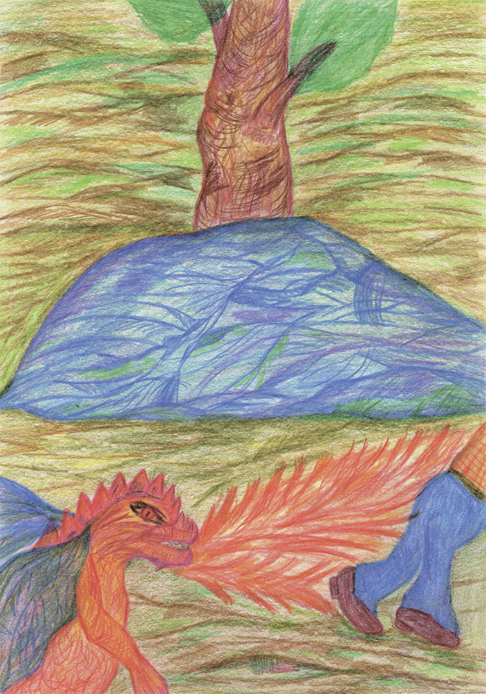 Дракончик почувствовал, что внутри него всё кипит от гнева. Он выступил вперёд, закрыв собой друга и несчастную собаку.