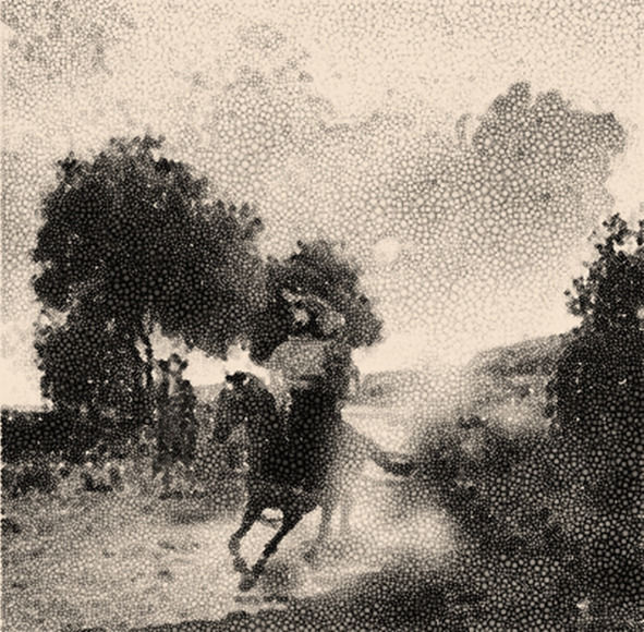Дон Иоаннис скрывается в пыли за поворотом. Дон Грегуар провожает его задумчивым взглядом.