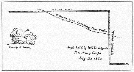 Protected by the fire of this redoubtable artillery, the column continued its deliberate march. When within five hundred yards, or about to cross the Emmettsburg road, it suddenly moved off by the left flank a short distance, as if to close up a break in the line or recover the true point of attack – some say one and some say the other. Be that as it may, Pickett's men first received the fire of Stannard's Vermont brigade while making this flank march, and again encountered it on their flank after facing to the front for the purpose of resuming their advance toward the heights.