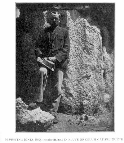 H. FESTING JONES, ESQ. (height 6 ft. 2 in.) IN FLUTE OF COLUMN AT SELINUNTE.
